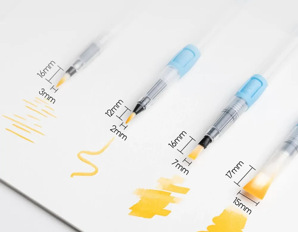 מכחולים ייעודיים לצבעי מים, בעלי קצה גמיש ויכולת החזקת מים מעולה, ליצירת מעברים עדינים וטקסטורה חיה.