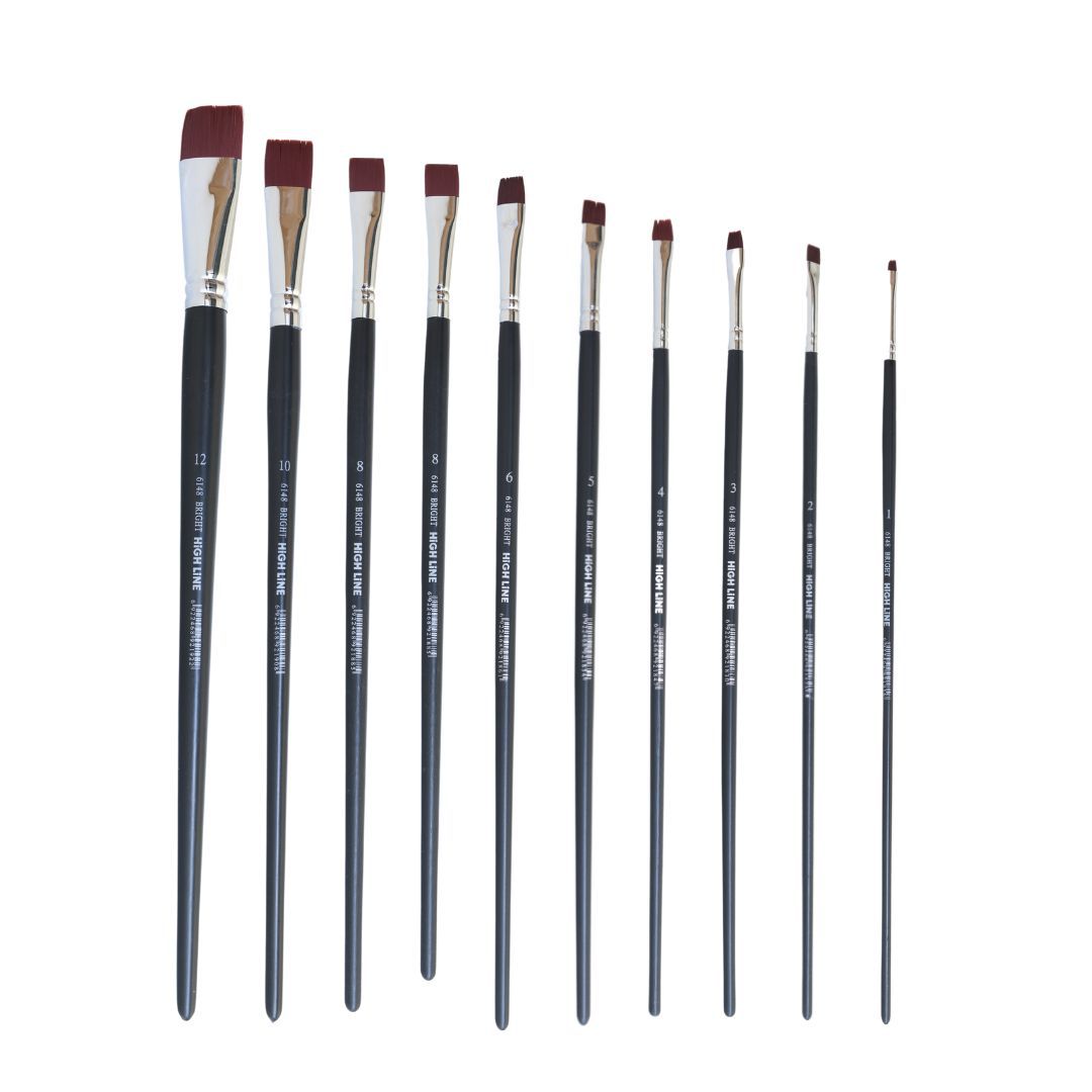 מכחולי 6148 מבית HIGH LINE – מכחולים מקצועיים עם ידית ארוכה ושיער סינתטי גמיש, לכל סוגי הצבעים והחומרים – מצבעי אקריליק ושמן ועד גואש ואקוורל סמיך.