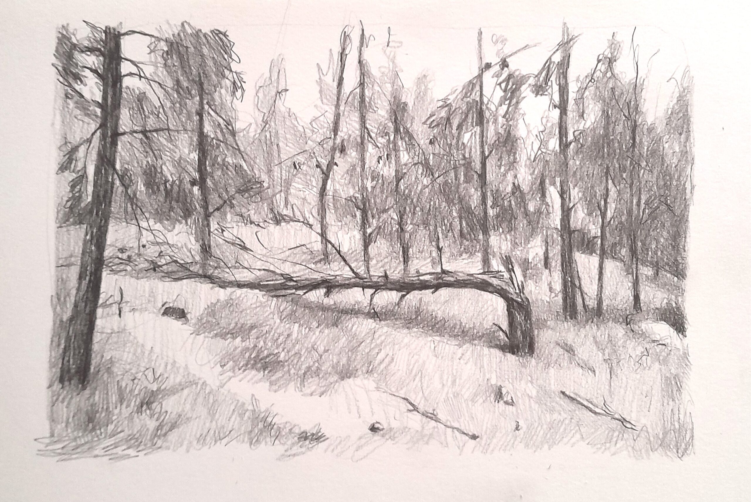 ברישום קלאסי אנחנו נוטים לדבר על קווי מתאר, על חפצים, על נגטיב ספייס. אבל מה קורה כשיוצאים לצייר נוף? שם אין הפרדה ברורה בין העשב לשיח, השמיים נמצאים בתוך העץ והמים מכפילים בהשתקפות את העננים.