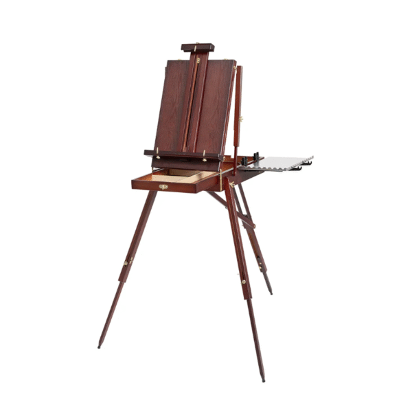 • ניתן להשתמש בכן גם ככן עמידה וגם כמעמד שולחני. המזוודה מכילה אחסון עם שתי מגירות כפולות, לארגון כלים לציור.