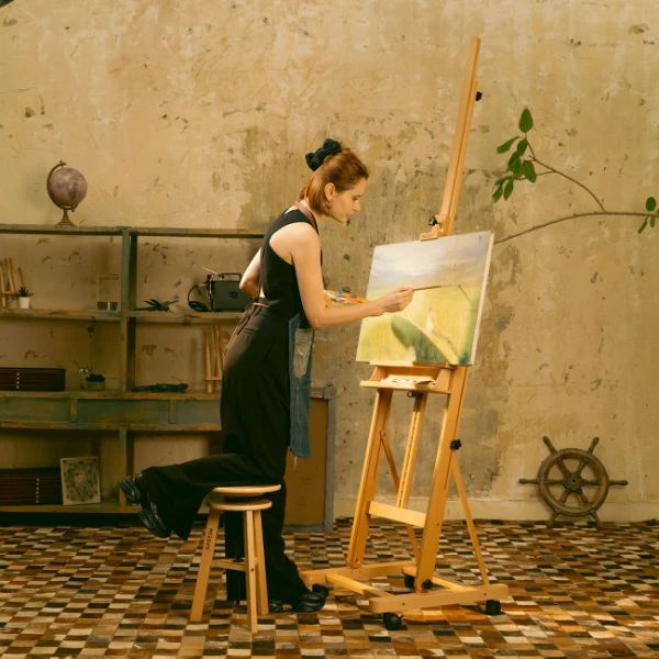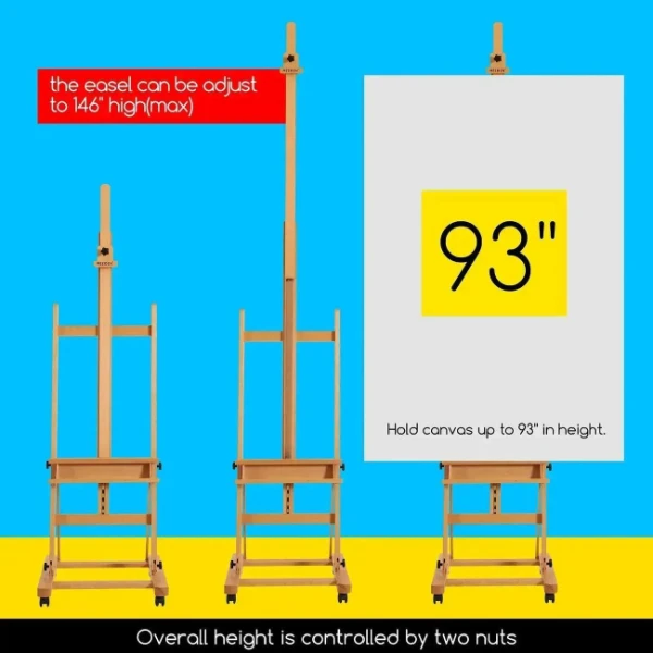 • בסיס חזק בגובה 66 ס”מ ורוחב 71 ס”מ, עומד על גלגלים שקטים הסתובבים ב-360° עם 4 מנעולים, המספקים ניידות ויציבות. המגש התחתון מגיע לגובה של 46 ס”מ ועד גובה של 127 ס”מ מהרצפה, ניתן לצייר, בין אם יושבים או עומדים.