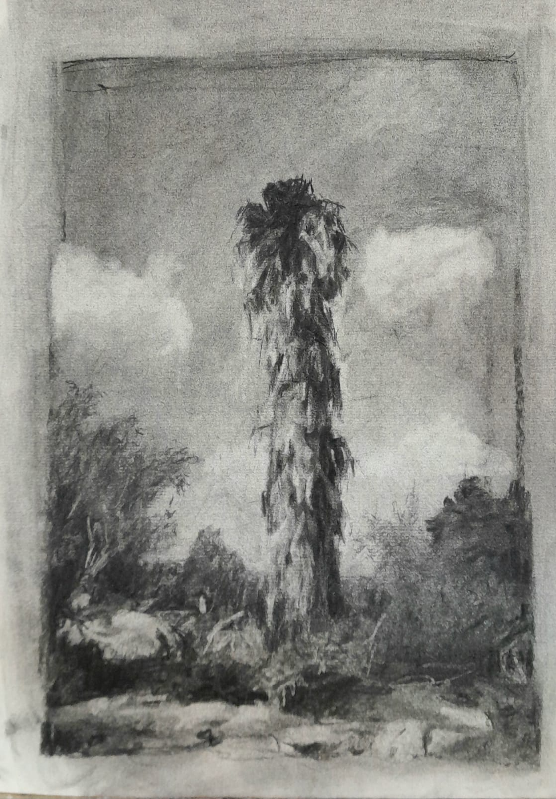 נעבוד בעיקר עם פחם, הפחם הוא כלי רישום מאוד עשיר שמאפשר לנו מגוון אופני הנחה על הנייר, נלמד לייצר טקסטורות שונות שמספרות את אופי המשטח אותו אנו רוצים לתרגם לנייר, נתרגל איך יוצרים את ההבדל בנראות שבין משטח של קיר למשטח שמתאר שמיים.