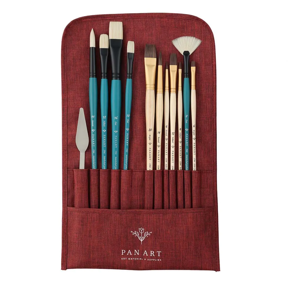 נרתיק מכחולים מתגלגל מבית Pan Art המאפשר אחסון וסידור נוח של עד 12 מכחולים. עשוי בד עמיד וקל משקל, מתקפל בקלות ומתאים לשימוש בסטודיו או לציור מחוץ לבית, תוך שמירה על המכחולים מאורגנים ומוגנים.