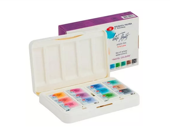 סט צבעי מים מקצועיים – 12 קוביות גווני פסטל – White Nights