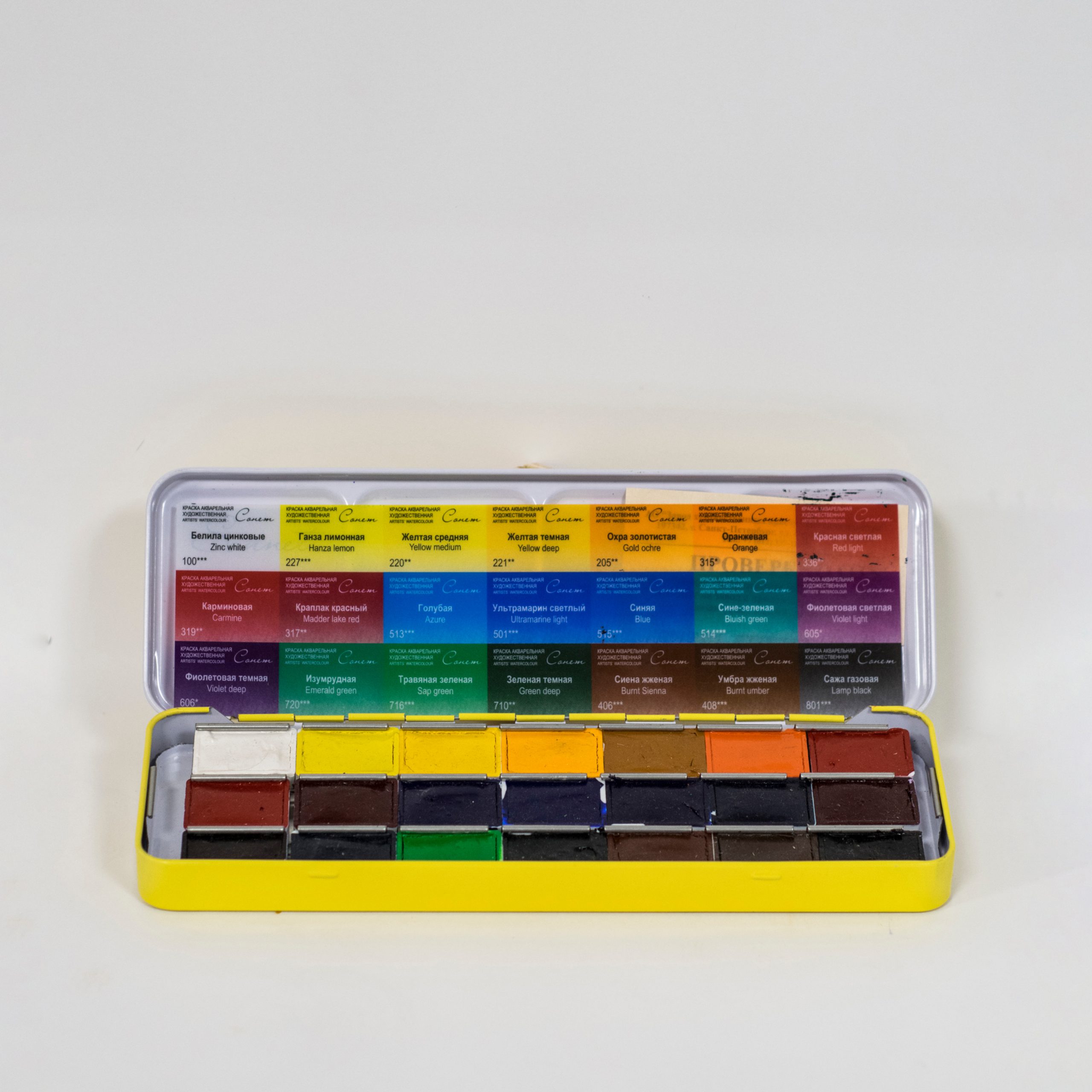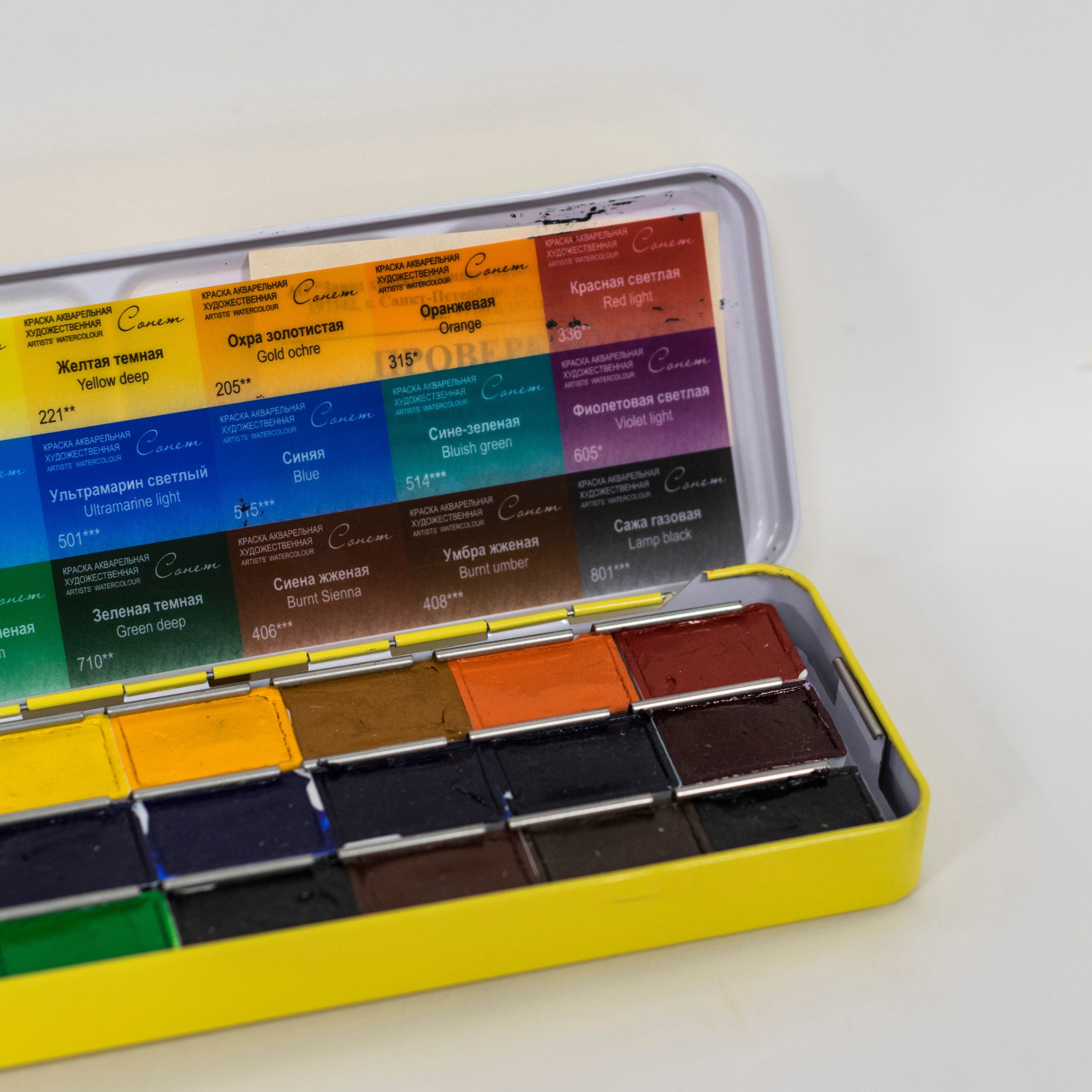 סט 21 צבעי מים סונטה מבית St. Petersburg מגיע בקופסה מתכת צהובה עם 21 צבעים תוצרת רוסיה.