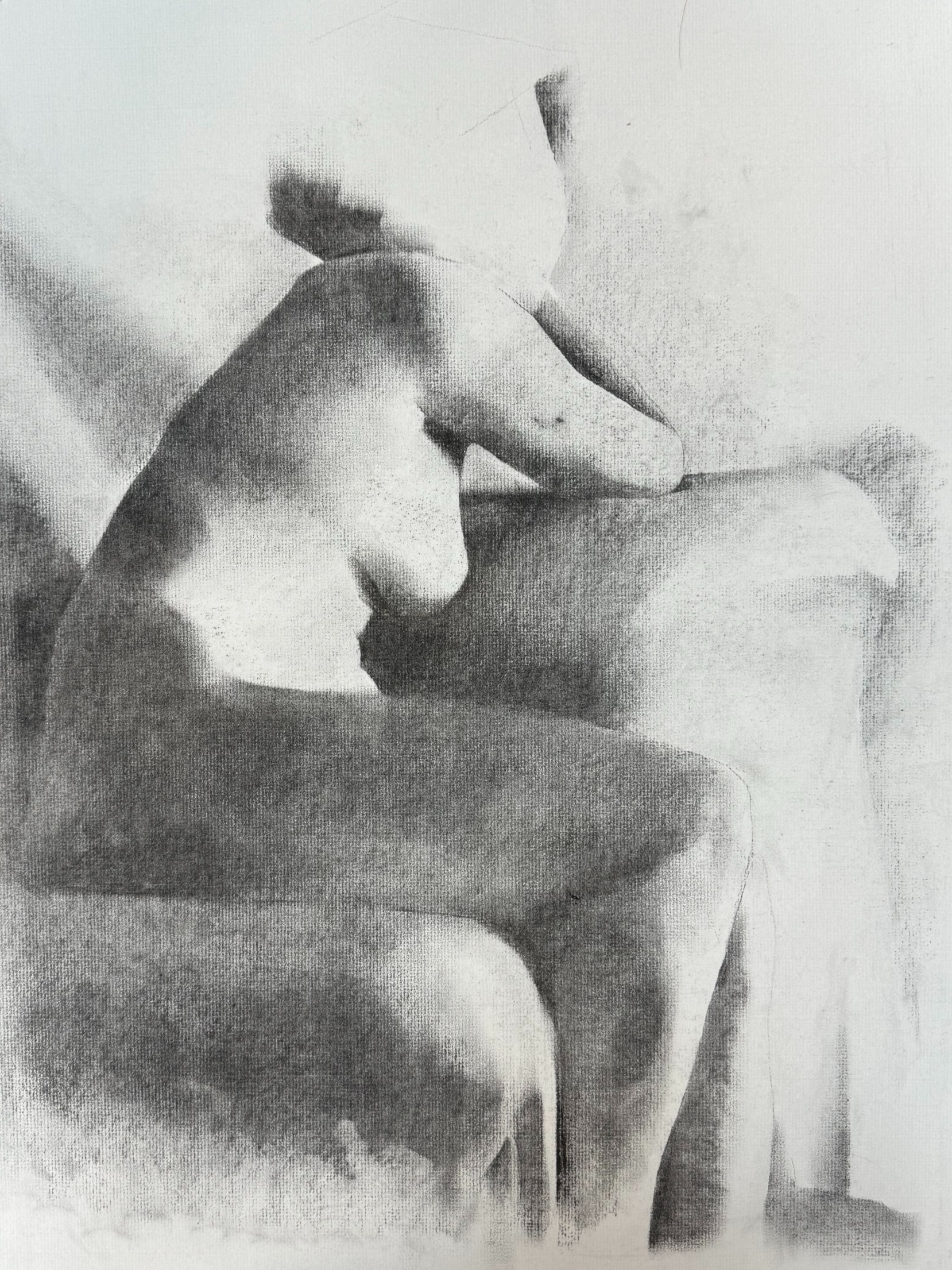 קורס רישום פיגורטיבי - עבודה בהתבוננות מול מודל בכל שיעור - בהנחיית האמן ארז אהרון.