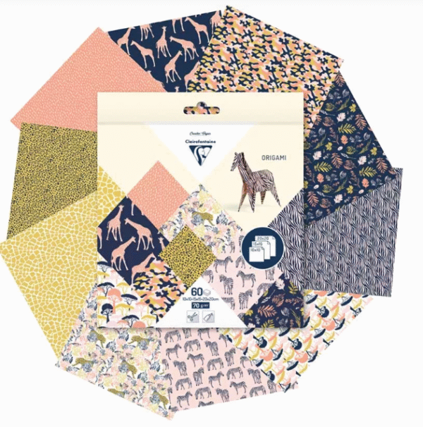 60 דפי אוריגמי 3 גדלים איורי ספארי- Clairefontaine